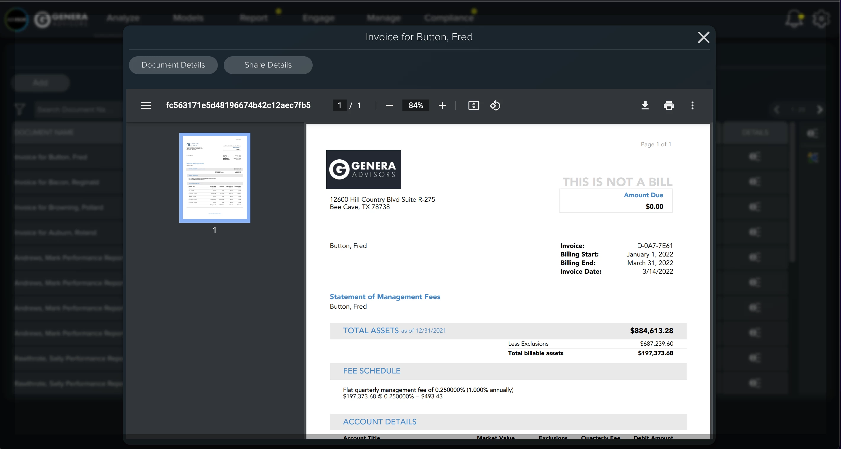 BillFin allows their Advisor clients using the CircleBlack-BillFin integration to export invoices generated in BillFin directly to the Document Vault in the CircleBlack Advisor platform.