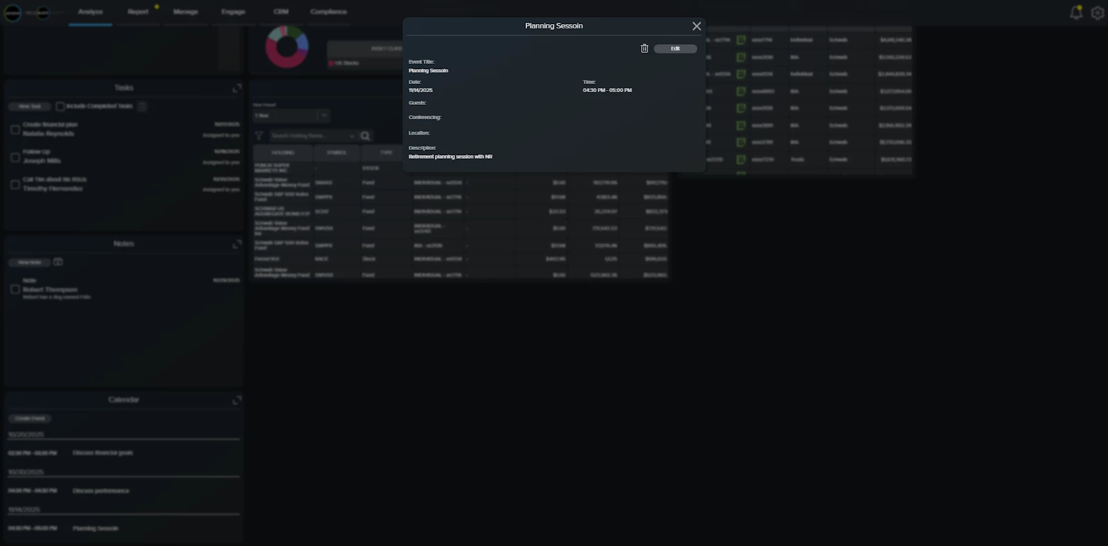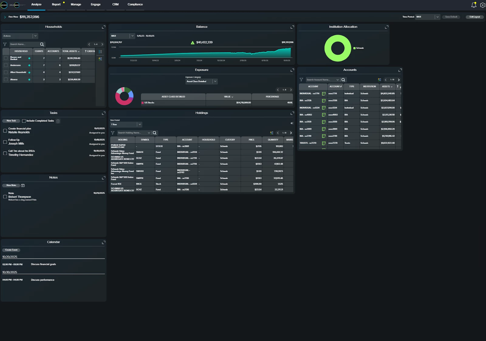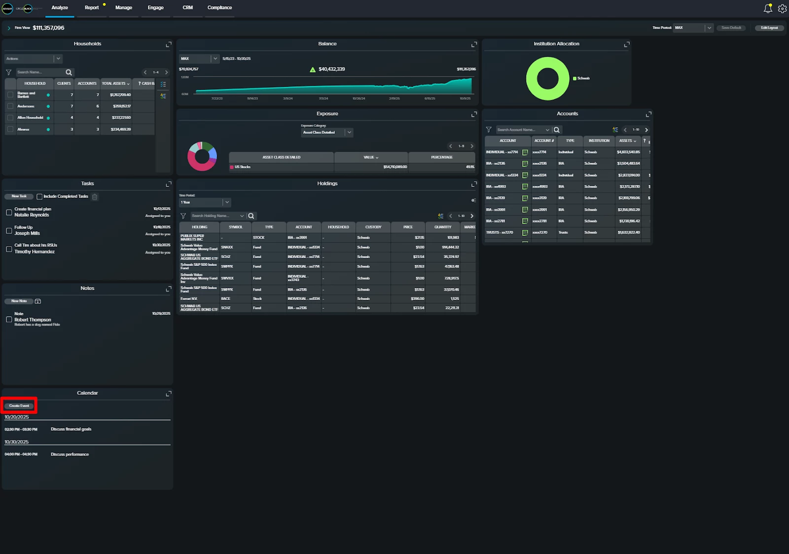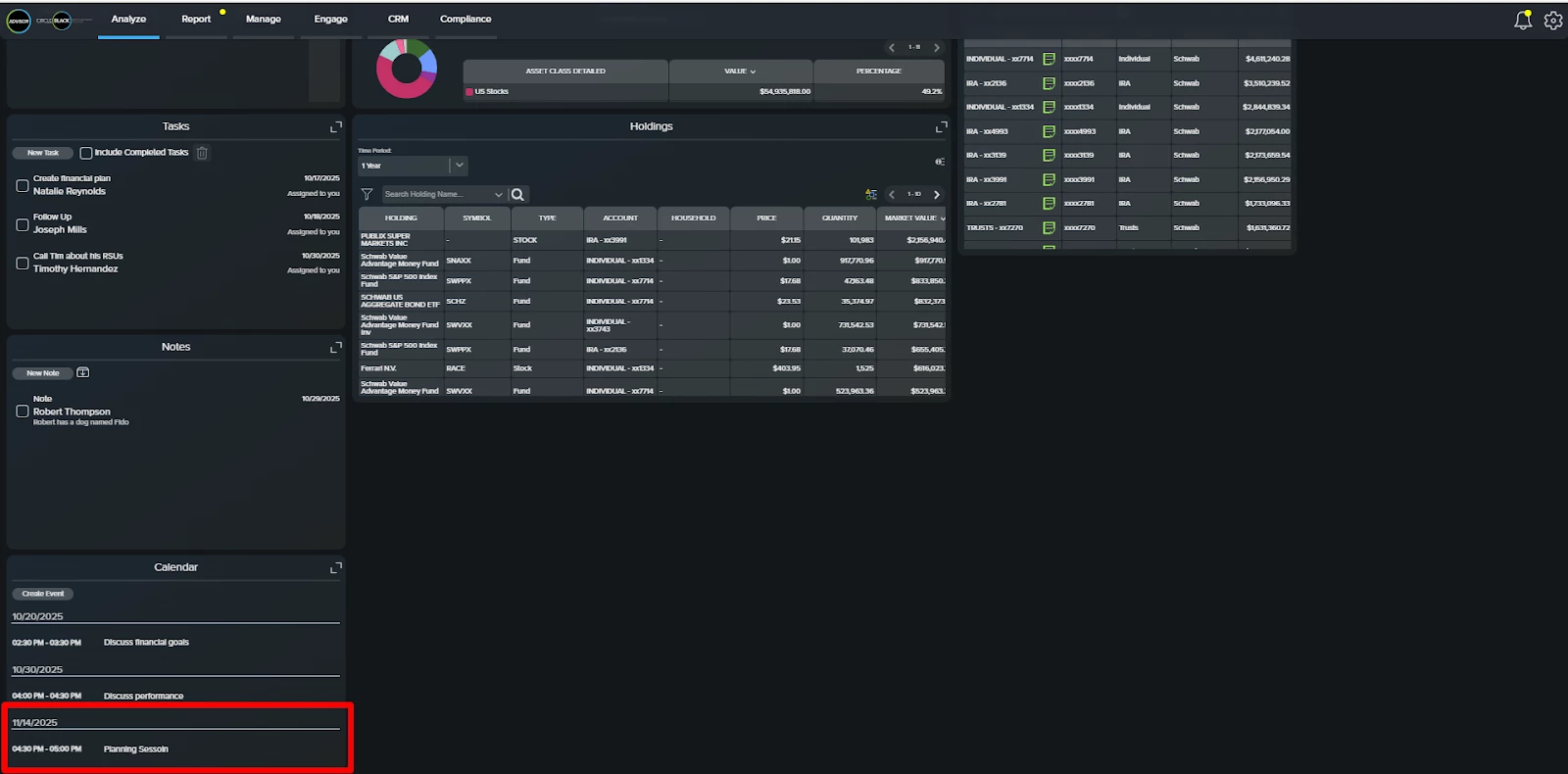 This experience is embedded directly into your Advisor Dashboard, giving you full context not only around CRM activity, but also portfolio performance.