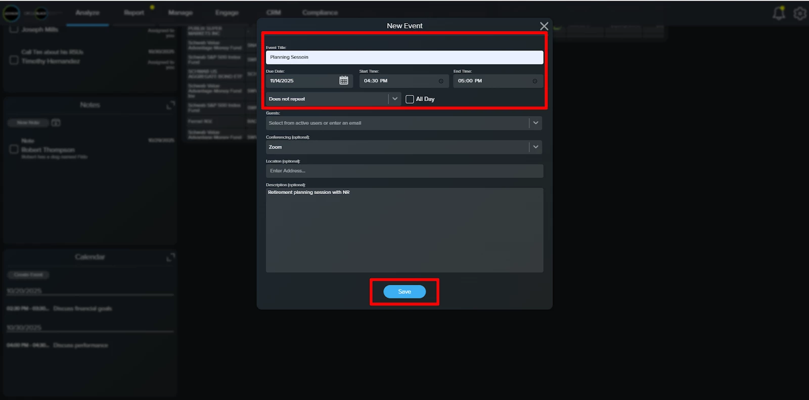 Below is a step-by-step guide on how to add calendar events and view them within your Advisor Dashboard.