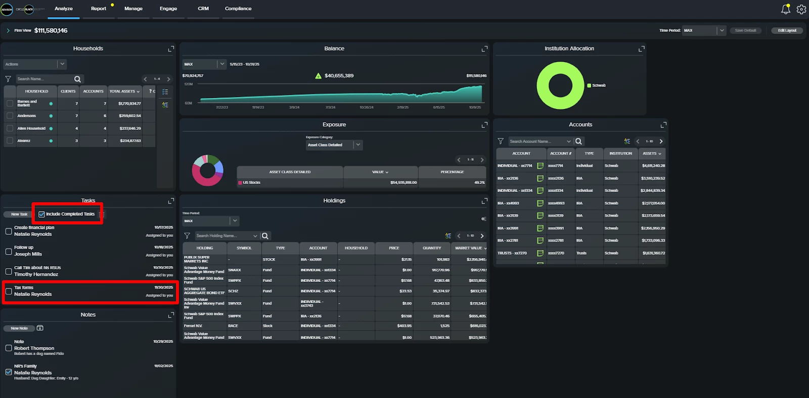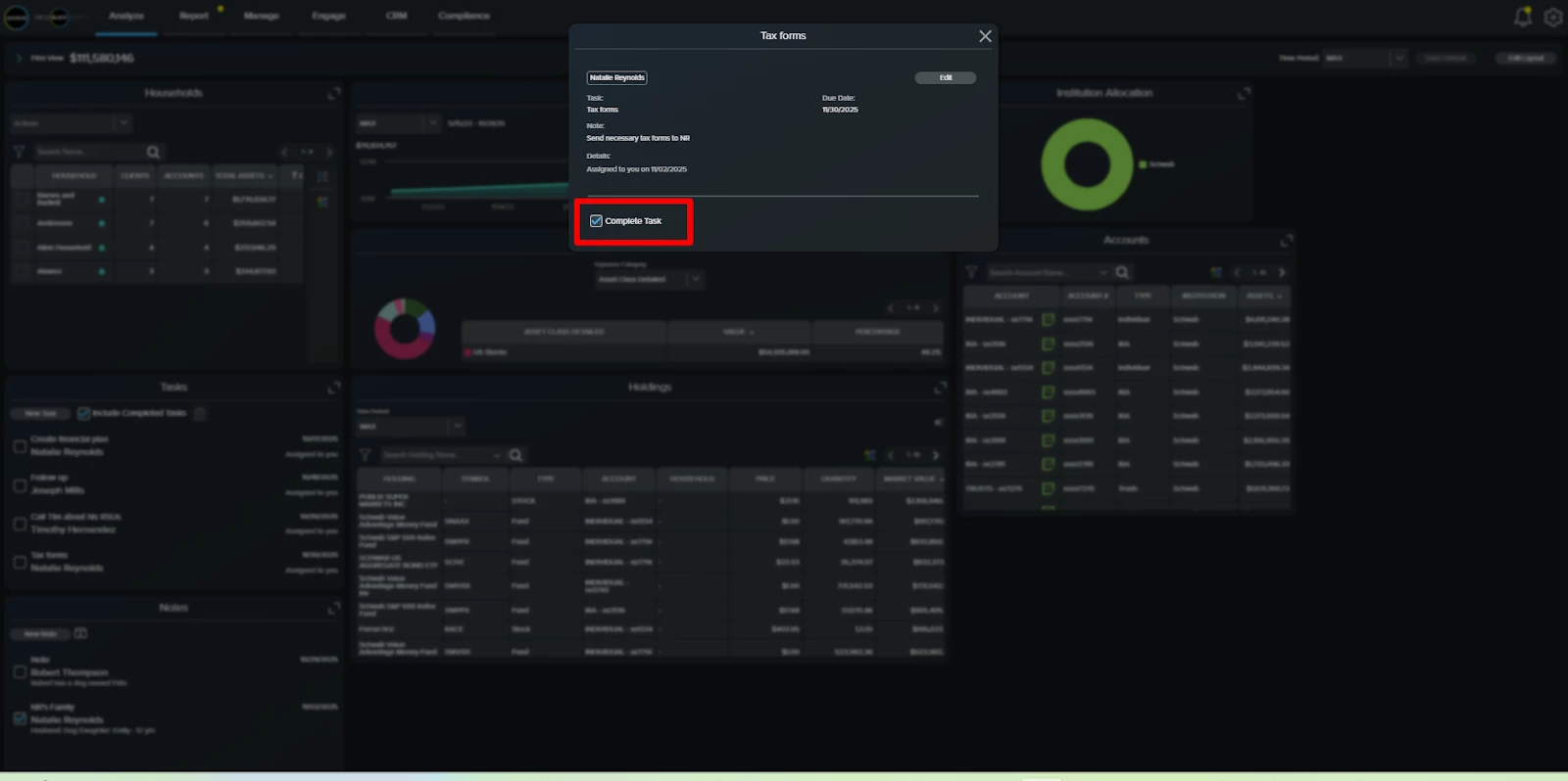 Once you’ve added Tasks to your Advisor Dashboard, you can easily begin using the feature to capture and manage all action items that arise from client conversations or day-to-day activities.