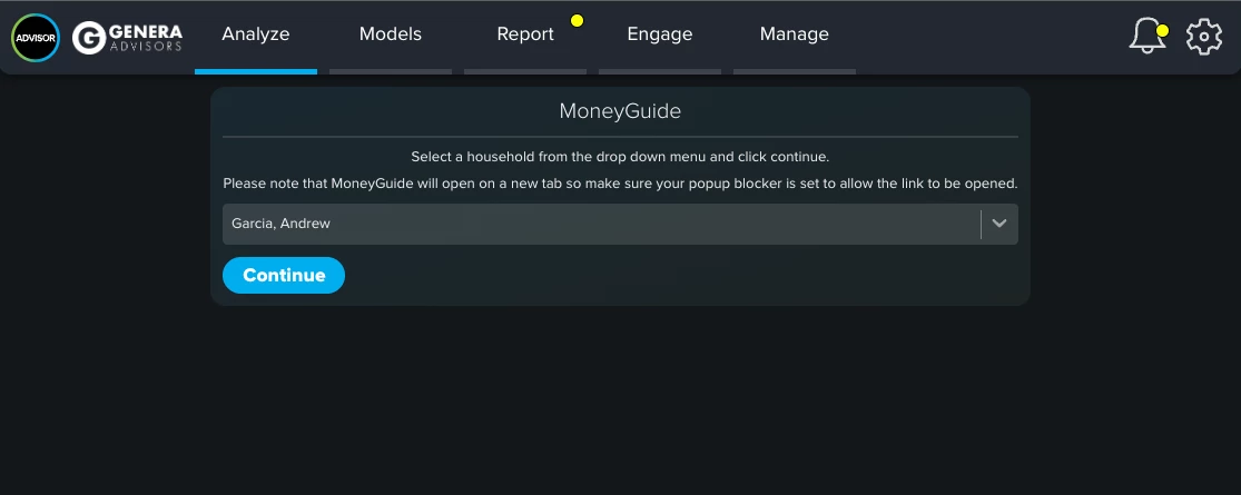 If the Client already exists in MoneyGuide, Advisors can easily link them to a corresponding household in CircleBlack: